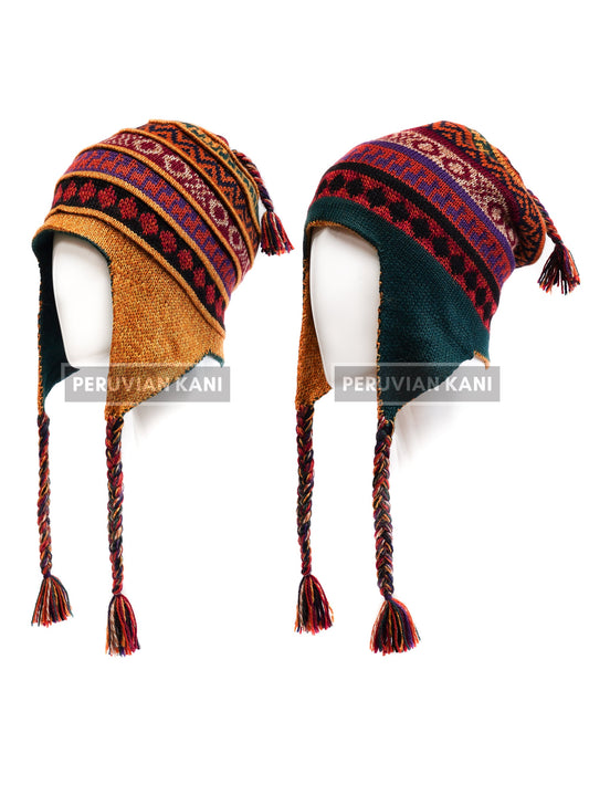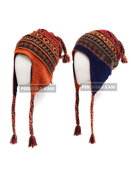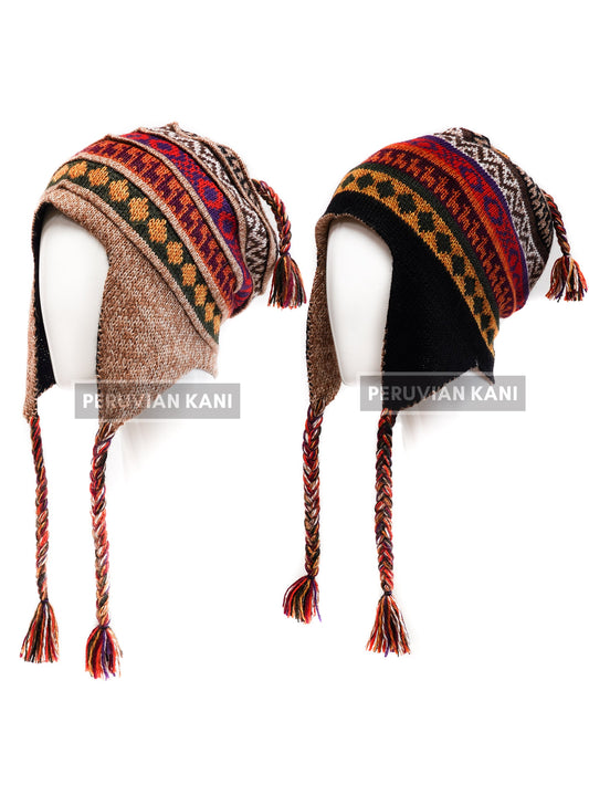 Gemütliche doppelseitige Alpaka-Mütze mit Ohrenklappen
