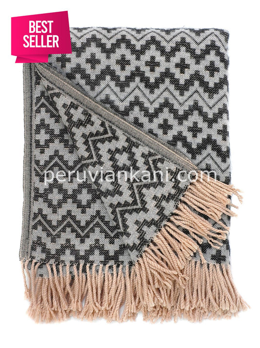 Plaid en Alpaga Motif Ethnique Andes Noir / Bleu Ciel