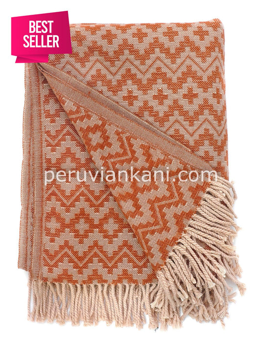 Plaid en Laine d'Alpaga Andes Design Ethnique Brick