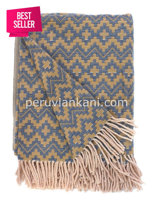 Plaid en Laine d'Alpaga Andes Design Ethnique Bleu beige