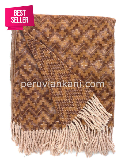 Plaid en Laine d'Alpaga Andes Ethnique Marron